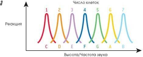Каждая нота имеет определенную частоту, которая тем или иным образом влияет на нервную систему, а каждая клетка мозга реагирует на высоту (частоту) звука (а).